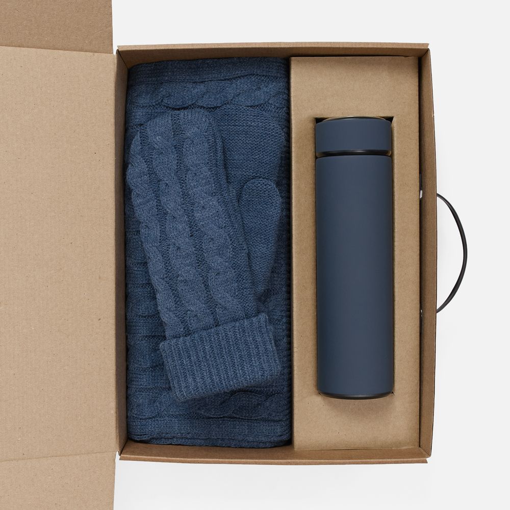 шарф, варежки - акрил 100%; термос - нержавеющая сталь, 304; покрытие софт-тач; коробка - микрогофрокартон
